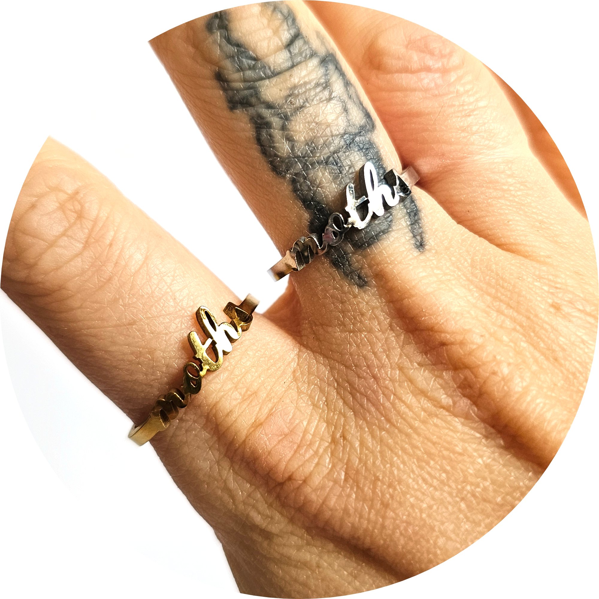 'moths' Cursive Text Steel Ring